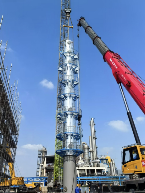 4月1日,由中化勞務(wù)公司承建的衛(wèi)星化學(xué)股份有限公司年產(chǎn)9萬噸丙烯酸和10萬噸精丙烯酸安裝工程項目完成首臺4C-130汽提塔吊裝作業(yè),標(biāo)志著該項目全面進(jìn)入設(shè)備安裝階段,為后續(xù)工程推進(jìn)打下扎實基礎(chǔ)。