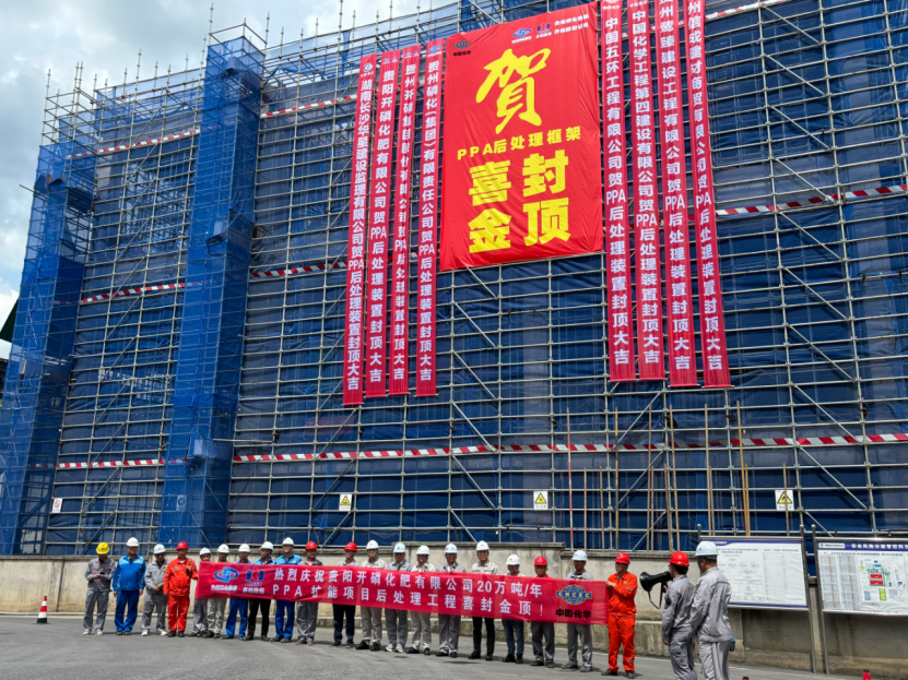 近日,由中國化學(xué)四化建華南公司承建的貴陽開磷化肥有限公司20萬噸/年P(guān)PA擴能項目后處理工程主裝置順利封頂,標(biāo)志著項目正式進入安裝施工階段。